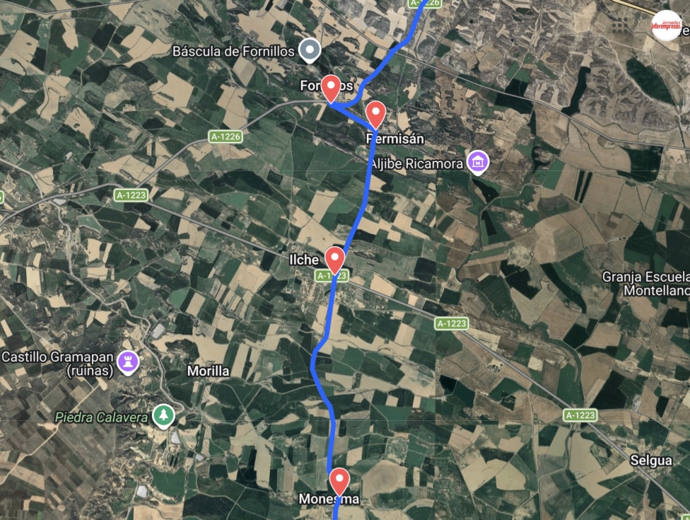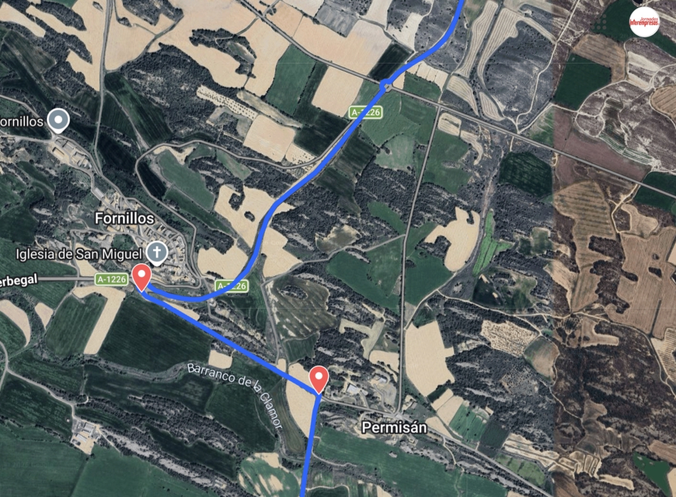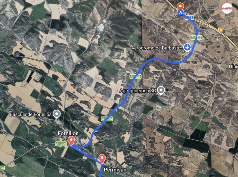 - Dirigirse por la A1226 - Carretera de Berbegal, dirección Fornillos - Barbastro