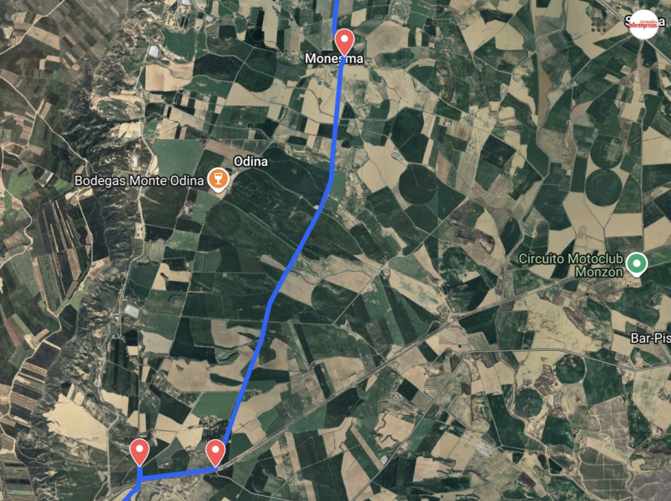 - Pasamos Monesma, que dejamos a la derecha, y seguimos rectos por la carretera Odina.
